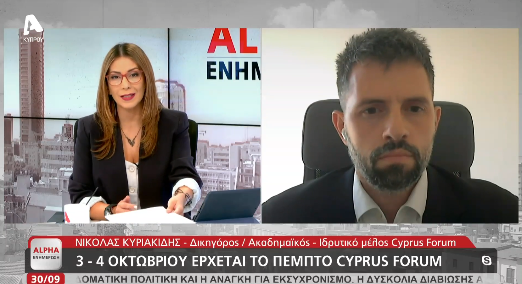 Απόσπασμα από την εκπομπή “Alpha Ενημέρωση” με τον Νικόλα Κυριακίδη, Ιδρυτή του Cyprus Forum.